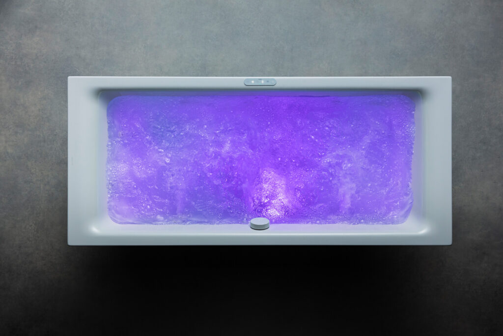 Mit ihrer Spektrallicht-Funktion sorgen die Whirlsysteme von Kaldewei für ein faszinierendes Spiel aus Licht, Luft und Wasser. Ob ein anregendes, tiefes Rot, ein sanftes, seidiges Grün, ein luftiges Blau oder ein neutrales Weißlicht – seit jeher ist die positive Wirkung von Licht und Farbe auf Körper und Geist bekannt und sorgt in Verbindung mit Wasser für noch mehr Tiefenentspannung. Für das ultimative Wellness-Erlebnis lässt sich so ganz einfach eine wohltuende Wasser- oder Luftmassage mit der Energie des Spektrallichts kombinieren.